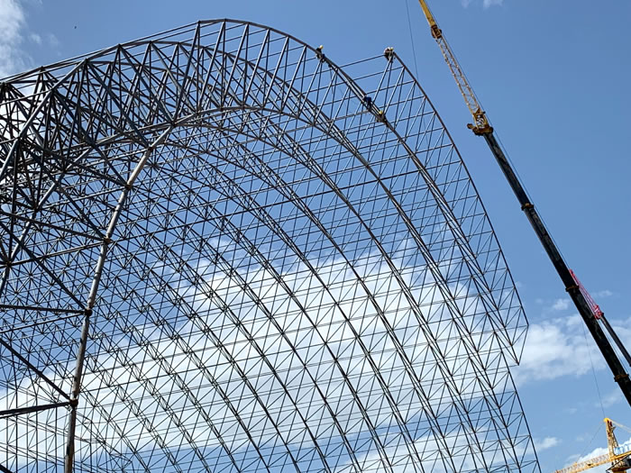 (2)网架加工前应对现场尺寸进行复测,确认无误后方可进行加工、安装;网架制作、运输、安装应遵守《空间网格结构技术规程》JGJ7-2010、《钢网架阿尔山螺栓球节点》JG/T 10-2009、《钢网架阿尔山螺栓球节点用高强度螺栓》 GB/T 16939-2016、《阿尔山钢结构阿尔山工程阿尔山施工规范》 GB50755-2012、《阿尔山钢结构阿尔山工程施工质量验收标准》 GB50205-2020。